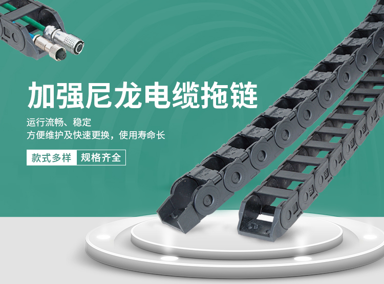 工程塑料拖鏈按使用場合不同,有需要耐高溫拖鏈的,也有需要防靜電拖鏈、長行程拖鏈的??傊?,都與工程塑料拖鏈的材質有關。今天小編主要跟大家介紹一下塑料拖鏈的材質。塑料拖鏈材質為PA66,在聚酰胺材料中有較高的...